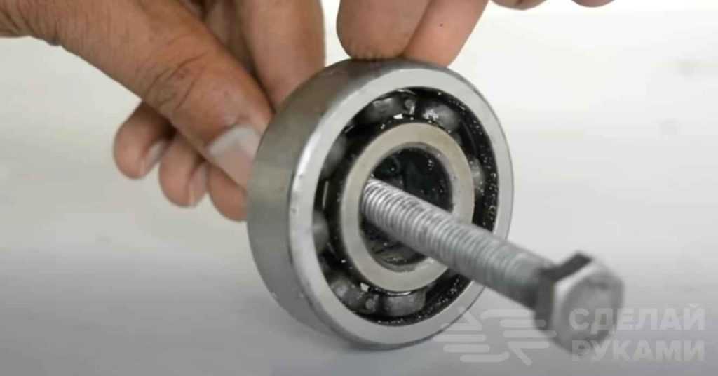 После этого подготавливаем болты с гайками и подшипники. Соединяем детали вместе, как показано на фото ниже.