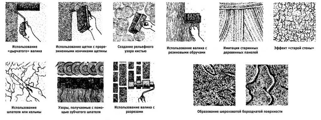 Узоры декоративной штукатурки, получаемые с помощью различных инструментов