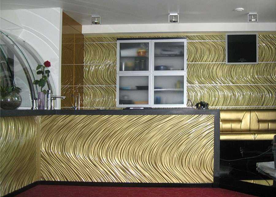Можно подобрать панели для любого стиля: металл и стекло хорошо гармонирует со стилем хай-тек, минимализм, гипс – с классикой и барокко, кожа – для этнической, африканской, марокканской стилизации, бронза и металл – для арт-деко, модерна. Можно усилить игру красок при помощи LED подсветки (софиты, светодиоды, боковые светильники) – она подчеркнет глубину рисунка.