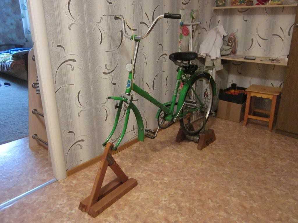 Велостанок на подставке достаточно удобен и прост для выполнения. Для создания подобного тренажера понадобятся следующие составляющие: