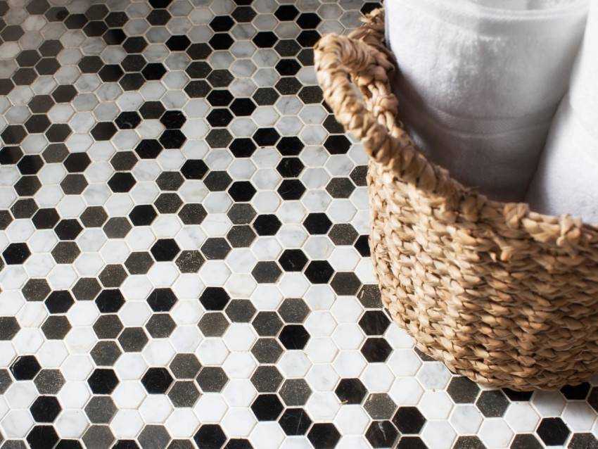 Площадь принта должна несколько превышать площадь пола ванной. |