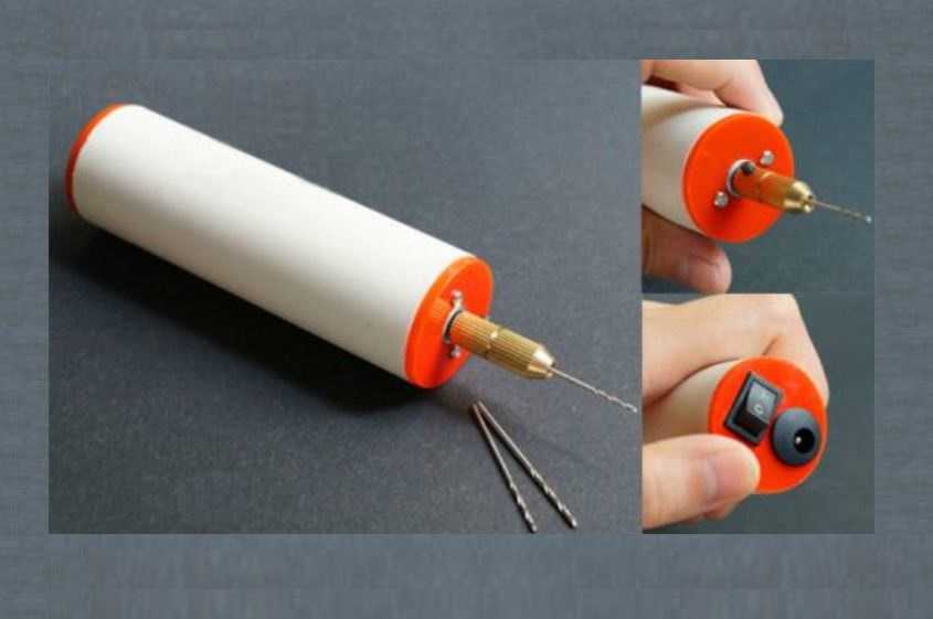Для изготовления сверлильного оборудования выбирают подходящий патрон и корпус подходящих размеров (пластиковая емкость). Чтобы привести во вращение рабочие поверхности, нужно подобрать электрический моторчик и блок питания, для чего можно разобрать старый фен или другую электротехнику.