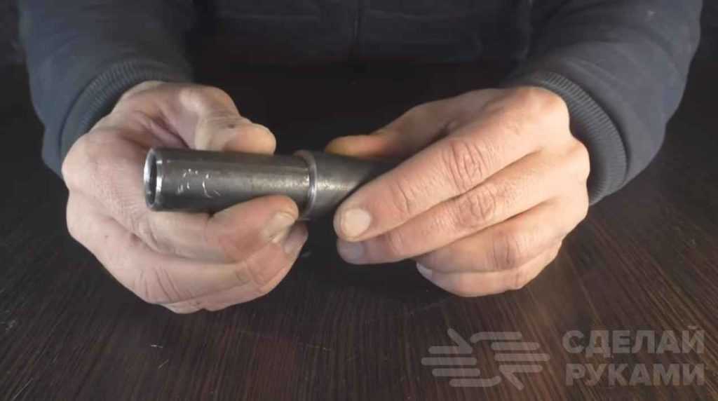 Для изготовления первого приспособления потребуется два отрезка металлической трубы разного диаметра. Длина каждого отрезка примерно 5-7 см. И их нужно будет сварить вместе.