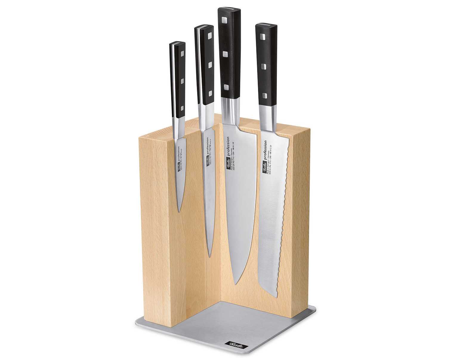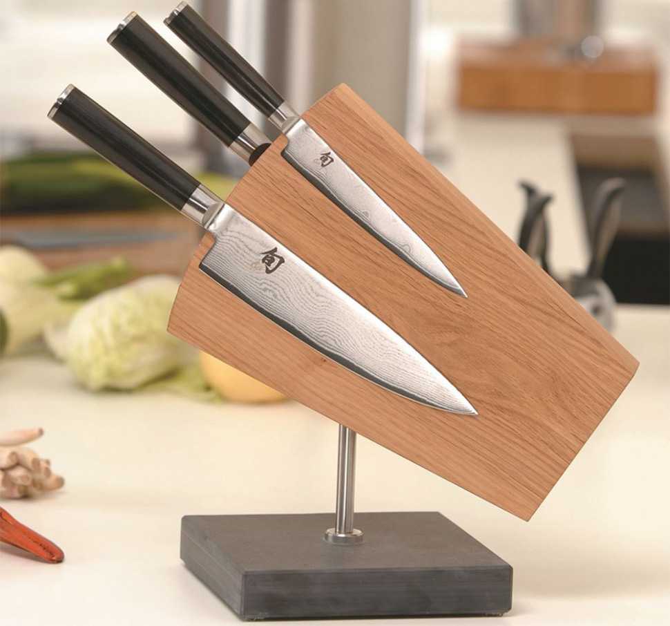 - Если держатель выполнен из пластика или дерева, то лезвие ножей не поцарапается.