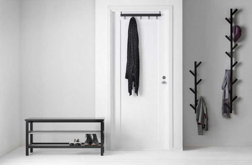 С помощью подобной конструкции очень просто организовать не только верхнюю одежду, но также обувь и необходимые аксессуары: шапки, шарфы, сумки и рюкзаки