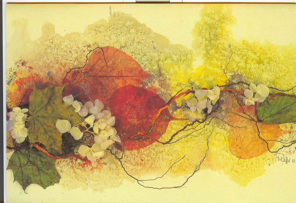 - Флоротипия: на форму наносится краска, а сверху раскладываются лепестки, цветки, листики и накрываются бумагой. После композицию помещают под пресс и на бумаге остается интересный отпечаток с силуэтами использовавшихся предметов: