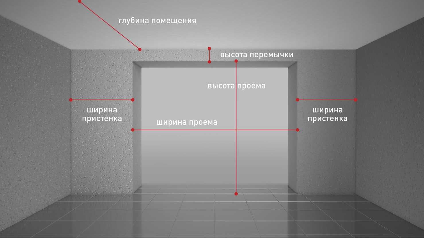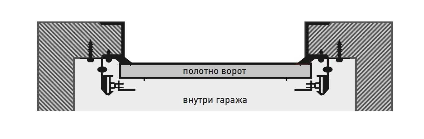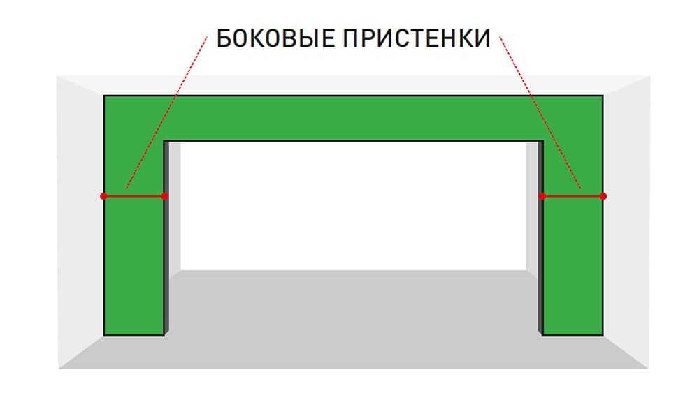 Боковые пристенки — расстояния от границ проема до боковых стен помещения. Они нужны для крепления вертикальных направляющих, по которым движется полотно при подъеме и опускании.
