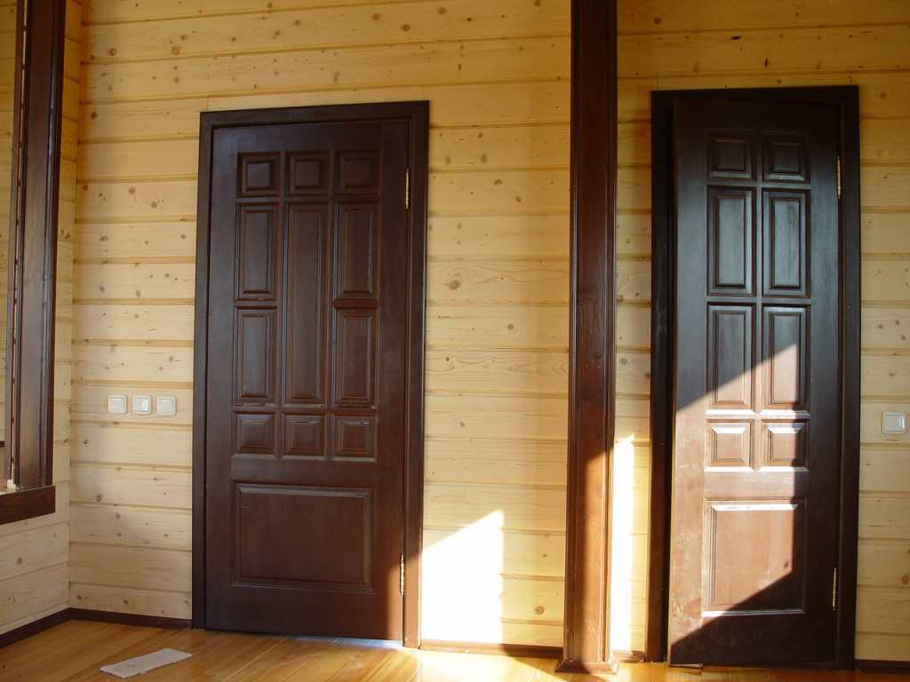 - Деревянная дверь. Самый доступный и привлекательный вариант. К плюсам стоит отнести герметичность, способность изменять свое положение вместе со строением без разрушения, а также хорошую теплоизоляцию. Из отрицательных моментов нужно выделить подверженность гниению при отсутствии обработки спецсредствами.