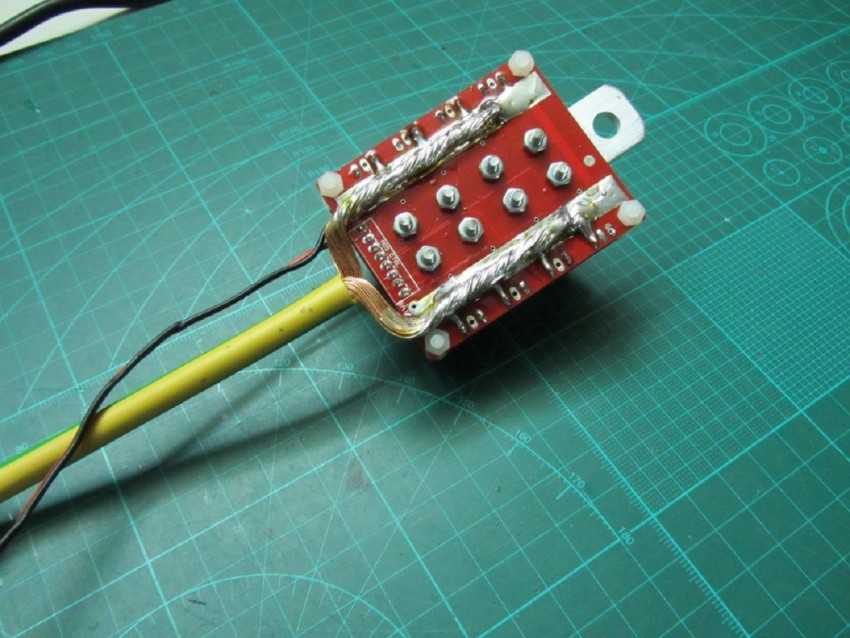 Такой полученный сварочный аппарат может питаться от 220 вольт. Для этого в завершение процесса обмотки с краёв параллельно соединяют. Среднюю также подсоединяют в эту цепь последовательно. Отводы устанавливают в клеммы изготовленной платы. Ток регулируем клеммами.