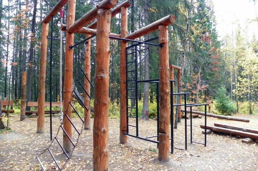 Уличный многоуровневый и многофункциональный турник из дерева должен быть изготовлен из качественного материала