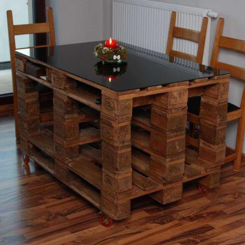 В таком случае берут европоддон, переворачивают так, чтобы поверхность оставалась на полу. Ту часть досок, которая образует основание паллета, отрезают. Этот будет материал для полок, которые фиксируют в поперечном направлении на щите, полученном из основной части поддона. Все деревянные поверхности шлифуют с помощью наждачной бумаги. При желании их можно покрыть лаком.
