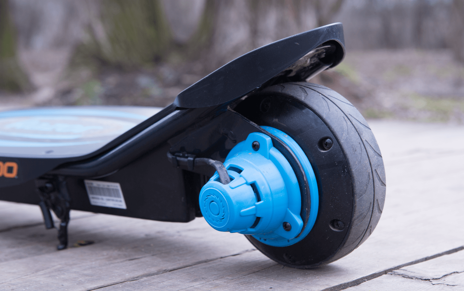Это уже более современная вариация, которая постепенно занимает позицию стандарта для среднего класса. В таких конструкциях электродвигатель дислоцируется непосредственно в ведущем колесе. Есть полноприводные модификации электросамокатов, в которых силовая установка находится в каждом колесе.