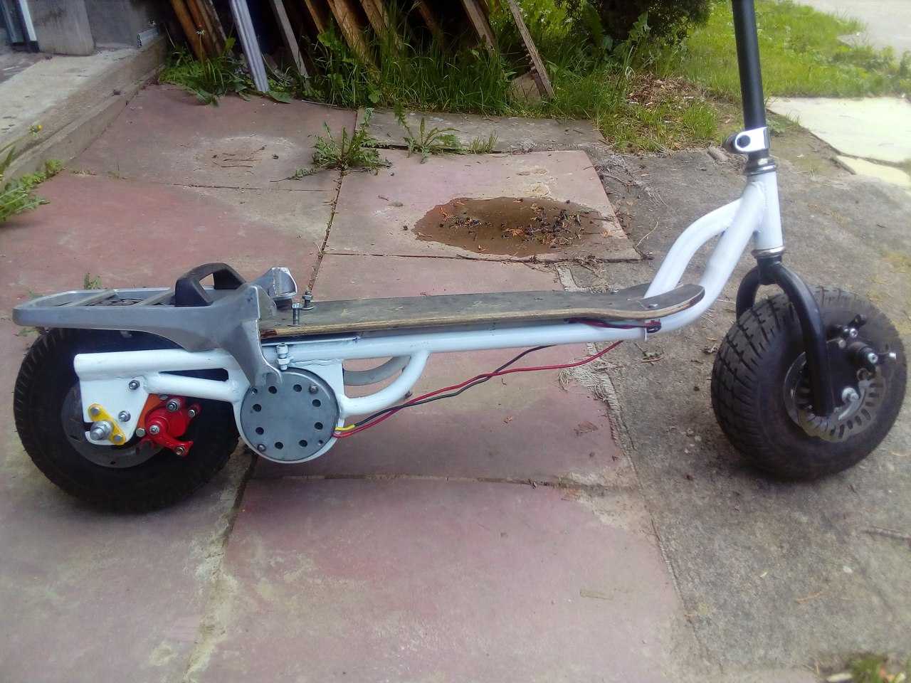 Самодельный электросамокат сделанный своими руками из двигателя электродрели и редуктора от болгарки: фото сборки, а также видео испытаний самоката.