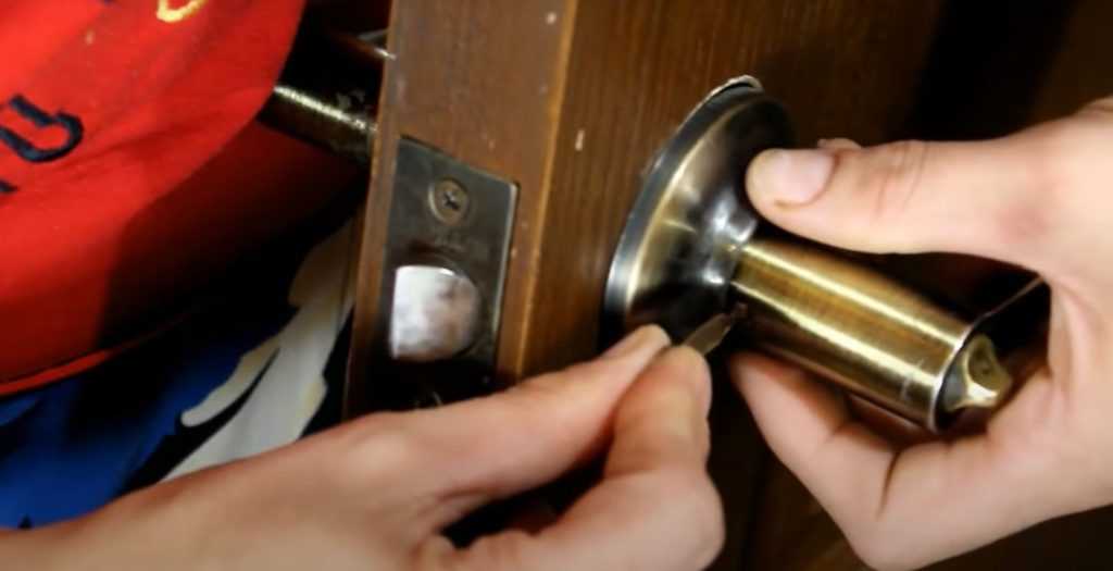 - Стандартная поворотная ручка – процесс демонтажа, в целом повторяет алгоритм снятия предыдущей конструкции с небольшими отличиями: