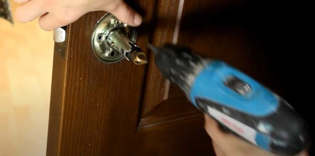 После снятия накладки и выкручивания винтов, с помощью ключа, вставленного в скважину, следует демонтировать саму конструкцию замка вместе с личинкой. При необходимости, следует приложить незначительное усилие, а, если конструкция не поддаётся – добавить проникающей жидкой смазки для снижения трения.