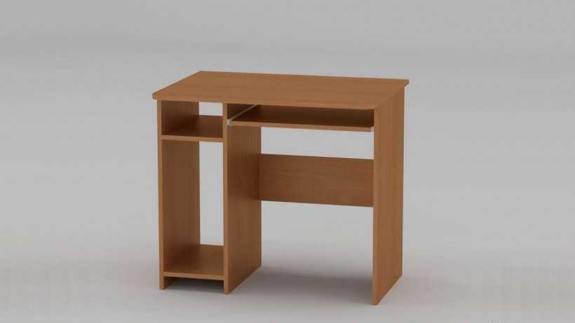 Глубина стола по крышке будет небольшая — 420 мм, в отличии от больших собратьев глубиной 600 мм. Кроме того, компьютерный стол для ноутбука сделаем легким по конструкции, но добавим тумбу с выдвижным ящиком на