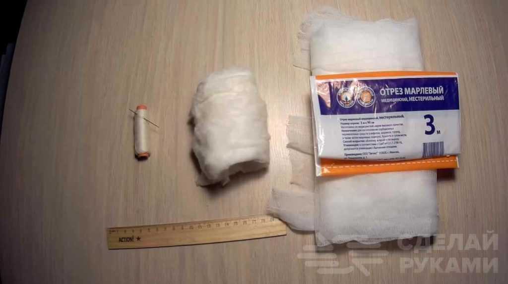 - медицинской марлей;