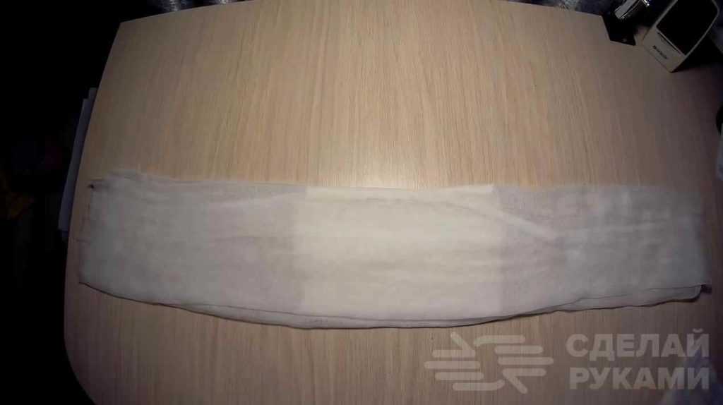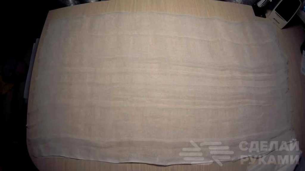 Можно поступить немного проще. Отрезаем кусок марли необходимого размера. Укладываем его на стол или другую ровную поверхность.