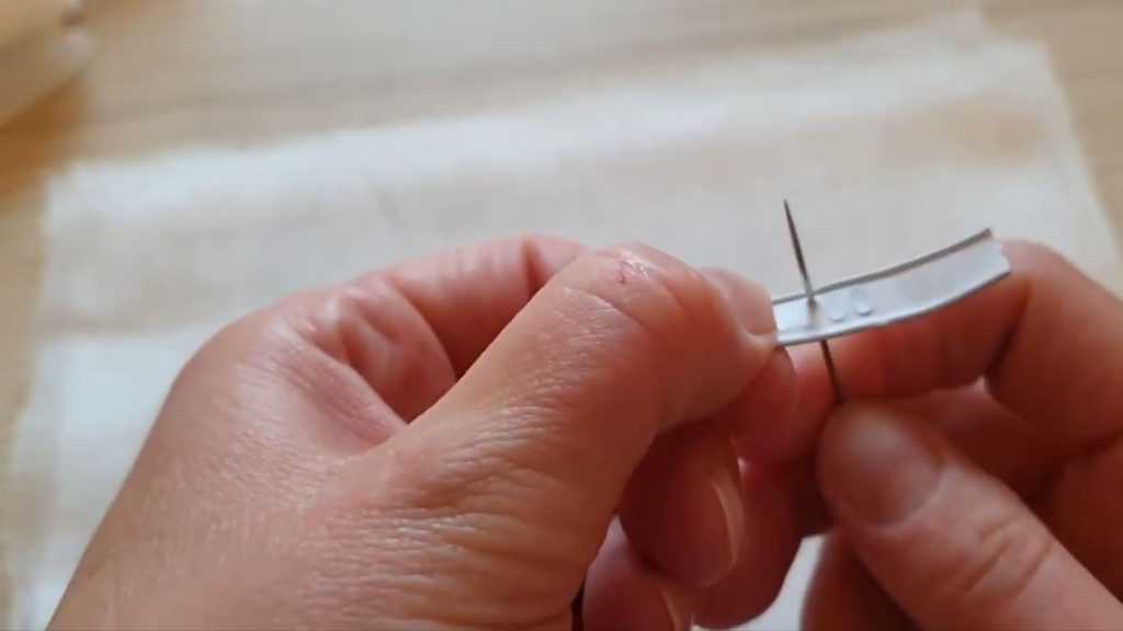 Затем берём зажим от пакета с хлебом и иглу. Протрите зажим спиртом или ацетоном. Затем его нужно проткнуть насквозь иглой в нескольких местах (он легко протыкается).