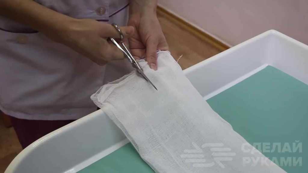 - подготовить кусок плотной марли, разложив его на рабочем столе;
