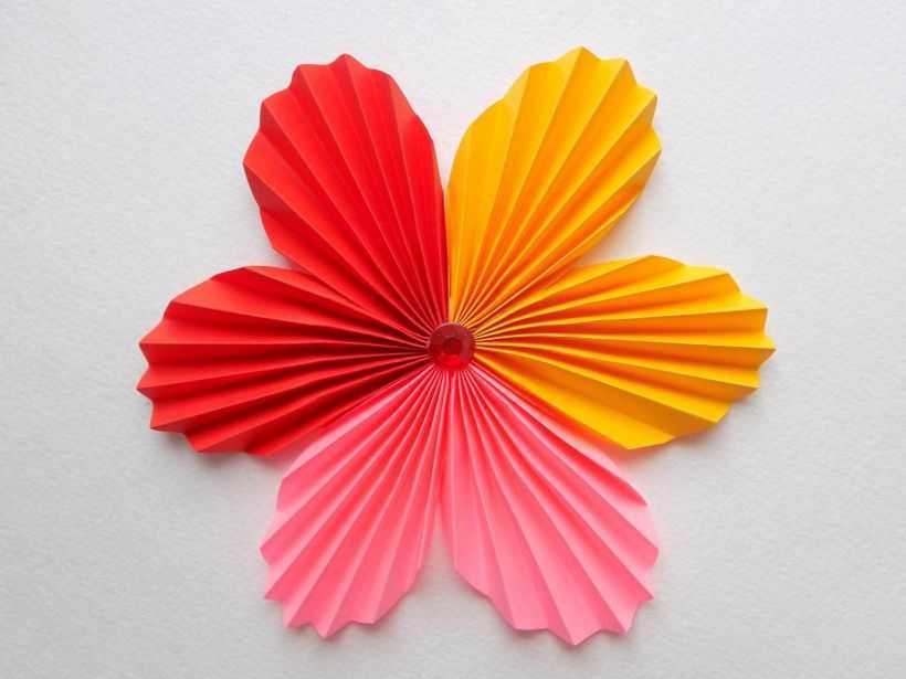 Из «гармошки» получаются объемные цветы. Такие детали можно использовать для аппликаций в детских поделках. Принцип изготовления самого простого цветка-гармошки: