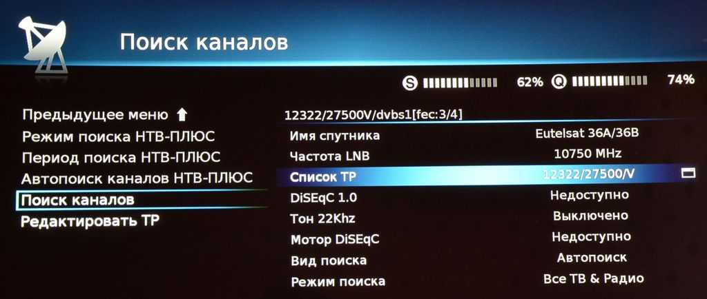 Настройка спутника и каналов в ресивере с использованием старой антенны происходит по тому же принципу: