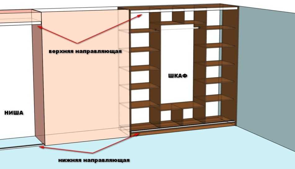 Также понадобятся такие комплектующие, как штанги для вешалок, направляющие для движения створок, дверной механизм.