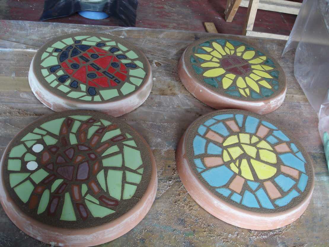 - Конечный результат. Узор, выложенный из битой керамической плитки, не оставит равнодушным никого.