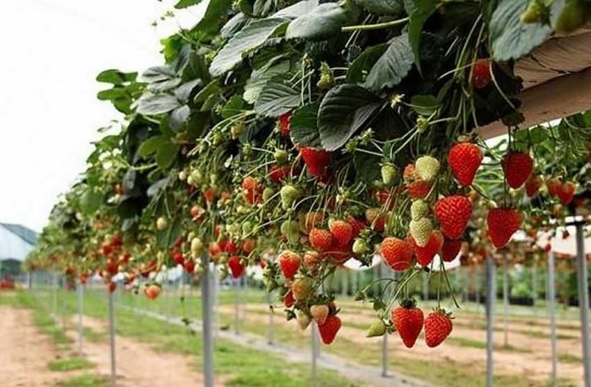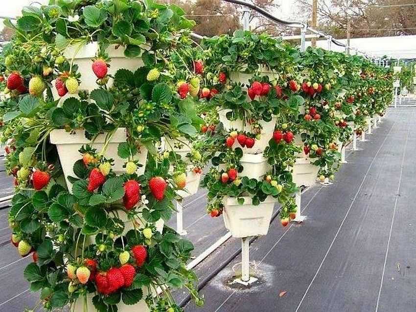 вертикальными клубничными грядками относится выращивание ампельных сортов в