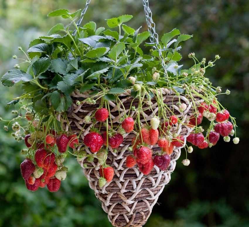 Подвесить можно практически любой предмет, в который можно насыпать земли и затем посадить клубнику.