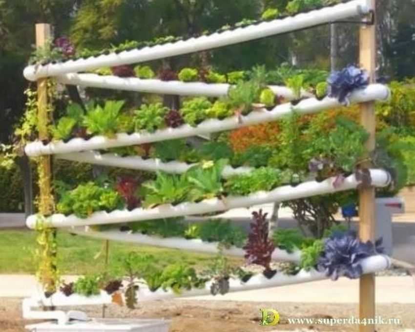 - Канализационные трубы ПВХ, расположенные друг над другом в виде лесенки в 3-5 ярусов с закрытой почвой и внутренней системой орошения;