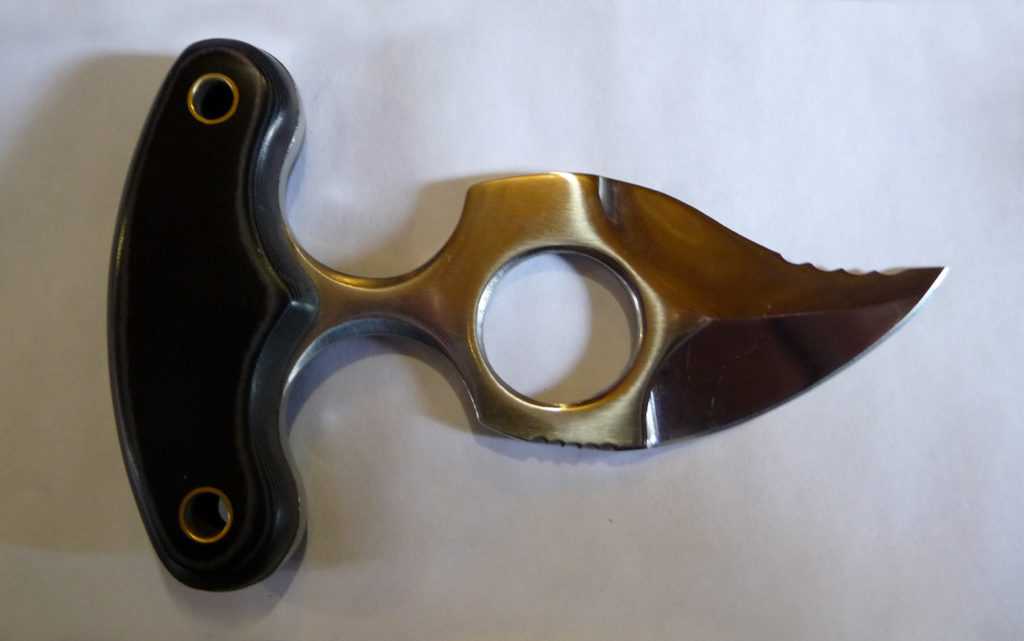 Главное при выборе тычкового ножа – это удобная рукоять. Причём на глаз это определить очень сложно. Однозначно не стоит покупать такие ножи без накладок на рукояти. Как бы брутально ни выглядел такой нож, при первом же ударе он врежется в ладонь торцом. Тонкая рукоять не будет плотно лежать в руке, нож станет ёрзать и повредит вам пальцы в лучшем случае (в худшем он их просто сломает). Выбираем нож с накладками или просто с толстой рукояткой. Вот тут-то и кроется подвох. Руки у всех разные, и удобный для одного пуш-даггер может не подойти другому. Единственный вариант – это брать каждую понравившуюся модель в руки и ориентироваться по ощущениям. Когда нож хорошо ляжет в руку, не должно чувствоваться дискомфорта.
