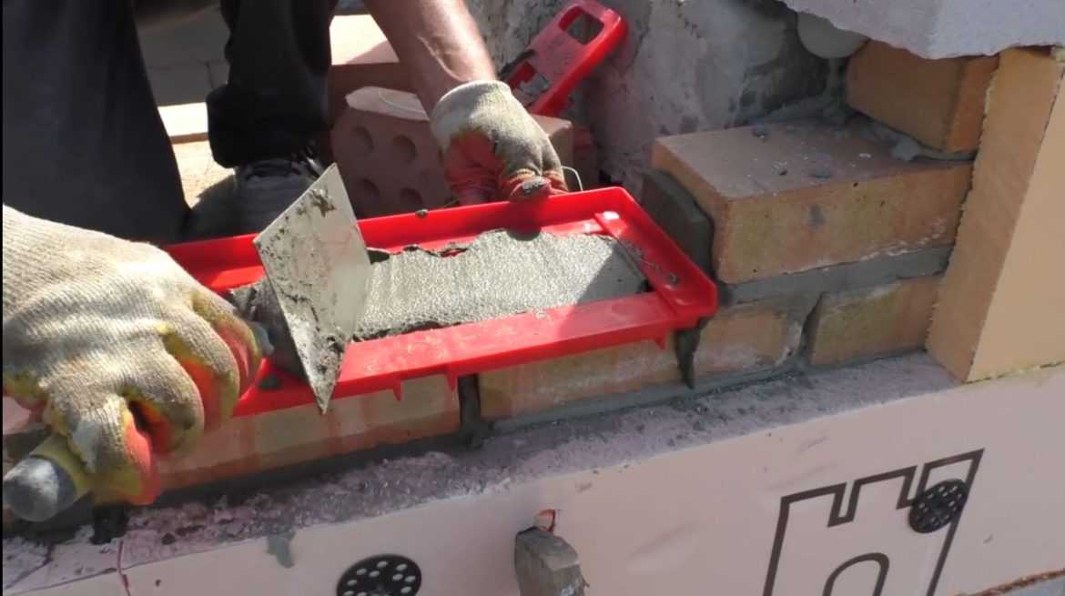 Дальше устройство передвигается по кладке, и все операции повторяются. Ошибки могут случаться только в самом начале работ. Главная из них – закладывание слишком большого объема раствора на всю длину лотка. Лучше ограничиться расстоянием в пару кирпичей, ведь элементы нужно уложить до того, как раствор схватится.