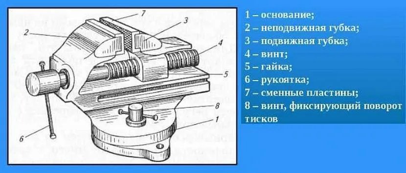 Среди основных геометрических размеров слесарных тисов можно выделить три наиболее важных: