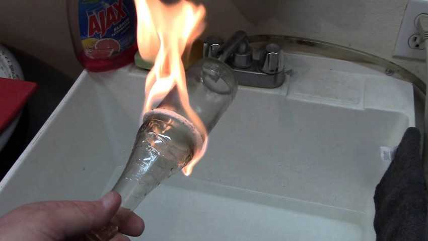 - Испытание огнем. Этот эксперимент не оставляет «паленой» водке никаких шансов испортить застолье.