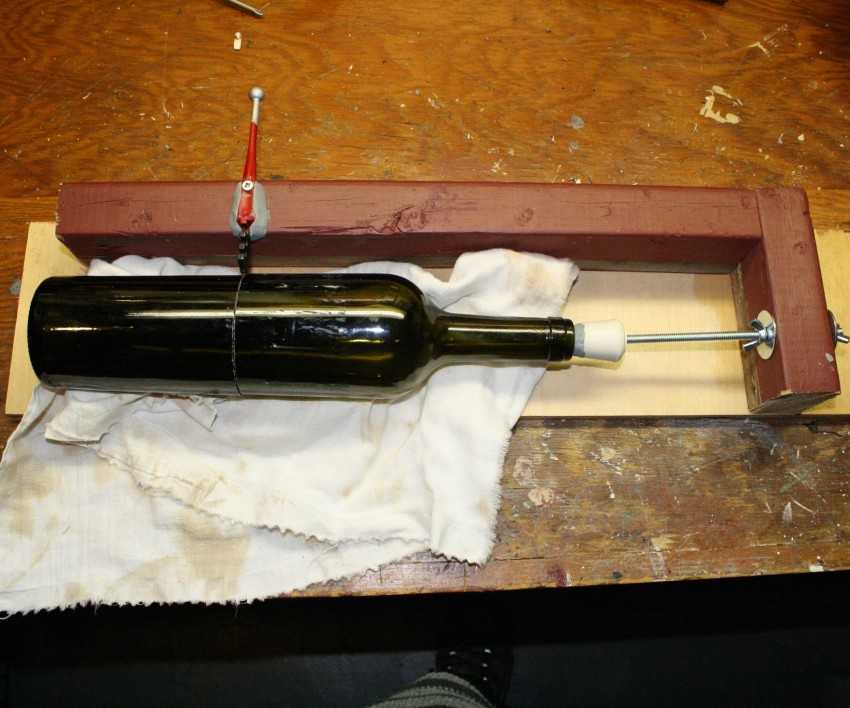 - Поместить туда бутылку горлышком вниз.