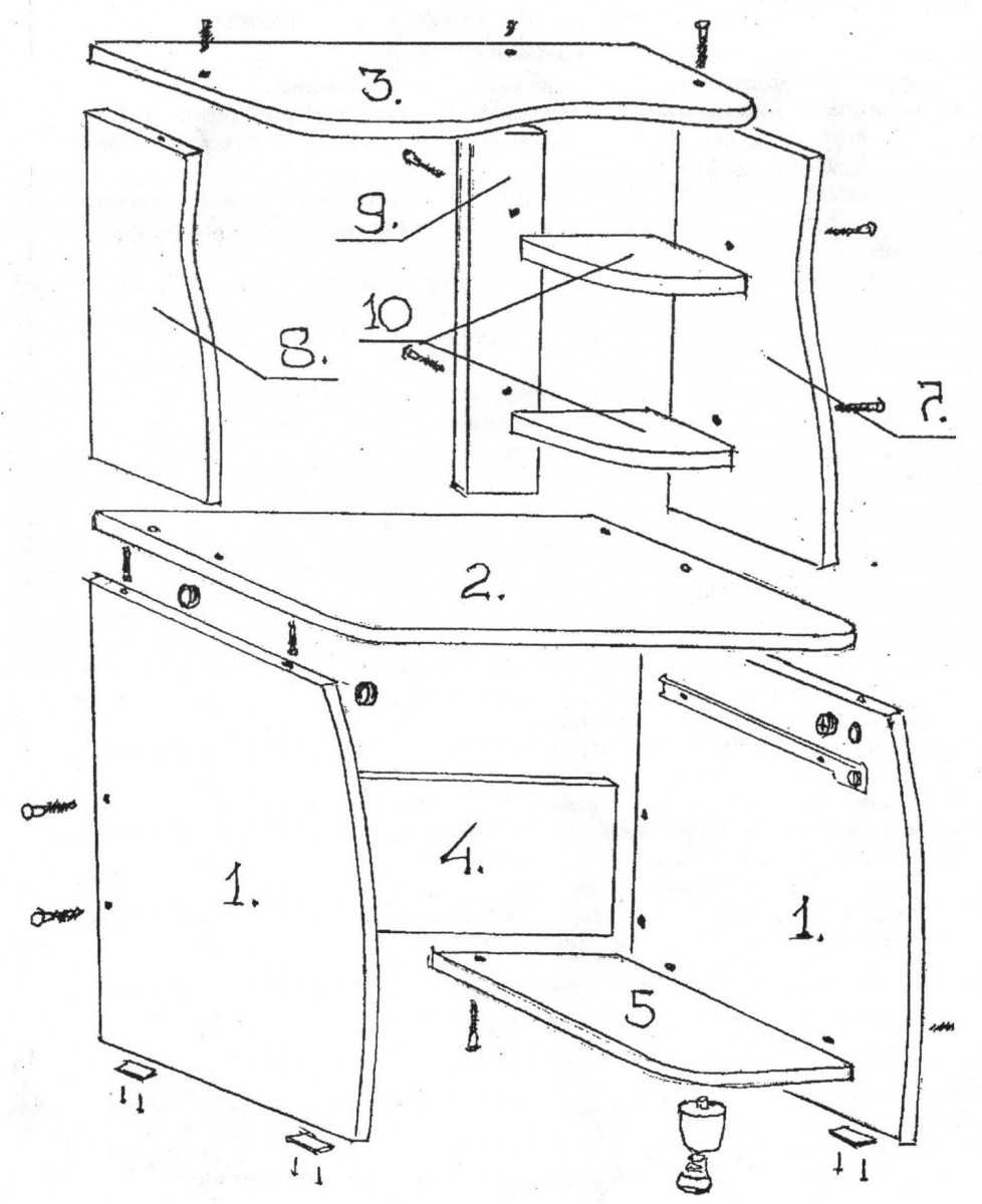 - Разметить на листе детали карандашом и выпилить их электролобзиком, не забывая проделать отверстия для креплений (другой вариант — заказать готовые детали у изготовителей мебели).