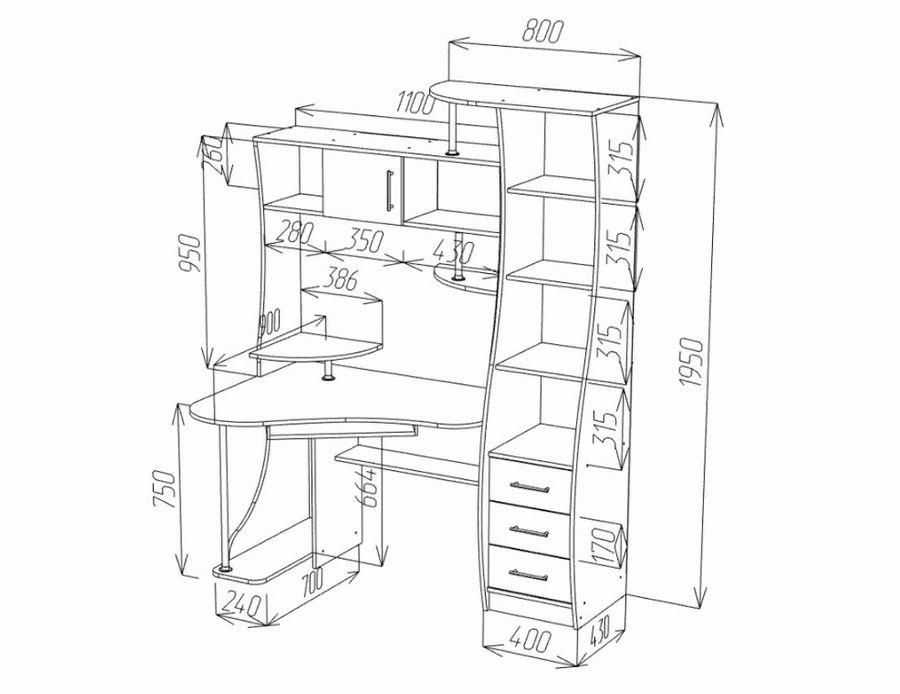 - стол-трансформер (может быть угловым и обычным, обеспечивает хранение машины и аксессуаров);