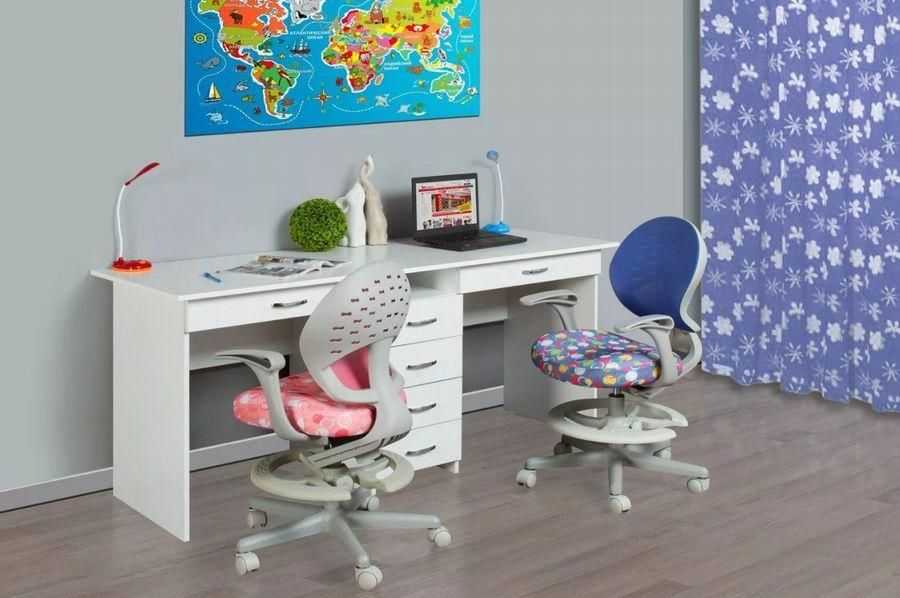 Если же у Вас двое детей, и они проживают в одной комнате, то можно выбрать такой стол, который не будет занимать много места в комнате, но будет оптимальным для занятий, для обоих детей одновременно.