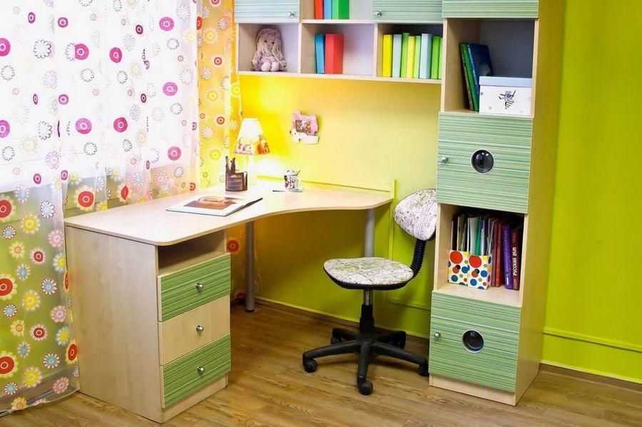 Письменный стол, желательно всегда располагать рядом с окном, что бы ребенку попадал дневной свет. Функциональность стола, Вы определяете сами, исходя из возраста ребенка, обстановки в комнате и ее размеров.
