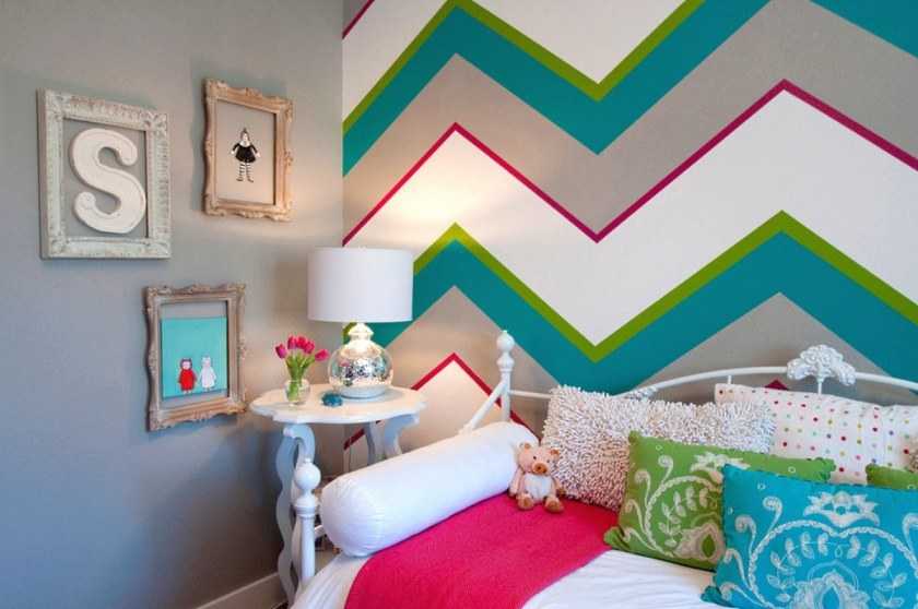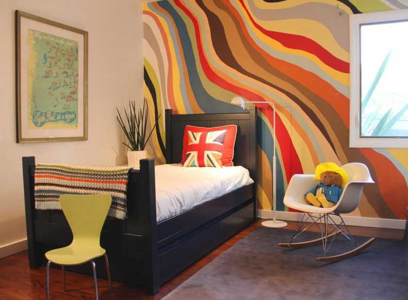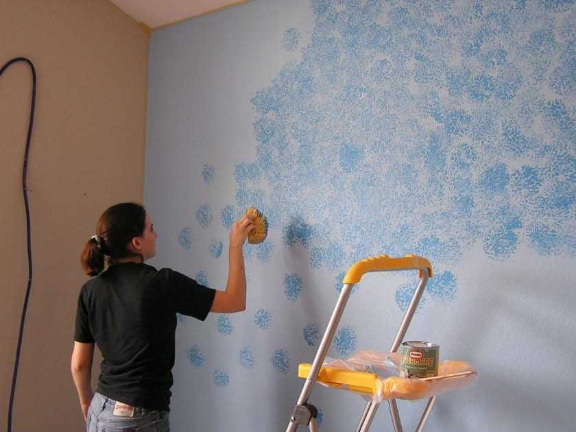 Вооружаемся спрей-краской и красим стену в ваш любимый цвет. Далее, берем обычный кухонный венчик и окунаем в ведро с другим цветом краски. Немного подождем, пока стечет краска и отпечатываем венчик на стене. Получаются интересные узоры.
