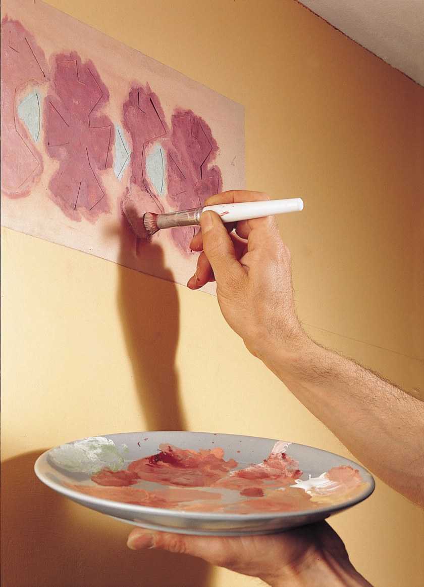 Украсьте стены с помощью аппликации тканью. Придумайте несложную картинку, которая впишется в интерьер. Вырежьте и сшейте детали. Наклейте их прямо на обои обойным клеем.
