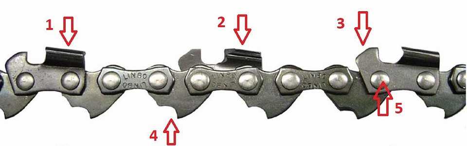 Пильная цепь состоит из следующих элементов: