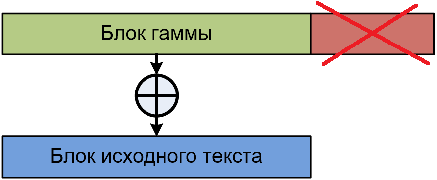 Усечение блока гаммы при несовпадении размеров блока исходного сообщения и блока гаммы