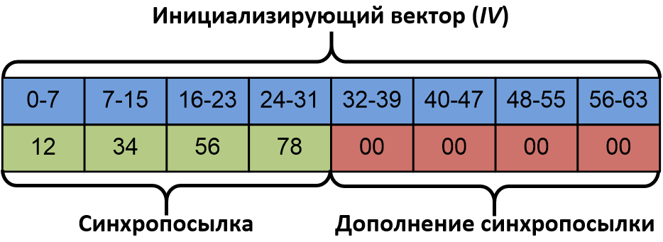 Значение этого вектора формируется из так называемой синхропосылки, которая представляет собой число определенной длины. Для режима гаммирования длина этого числа должна быть равна половине размера одного блока используемого алгоритма блочного шифрования. Само значение синхропосылки для режима гаммирования должно быть уникальным для каждого цикла шифрования, проведенного с использованием одинаковых ключей, при этом требований к конфиденциальности синхропосылки не предъявляется (то есть ее можно передавать в открытом виде вместе с зашифрованным сообщением).