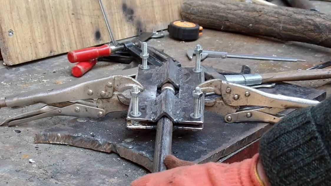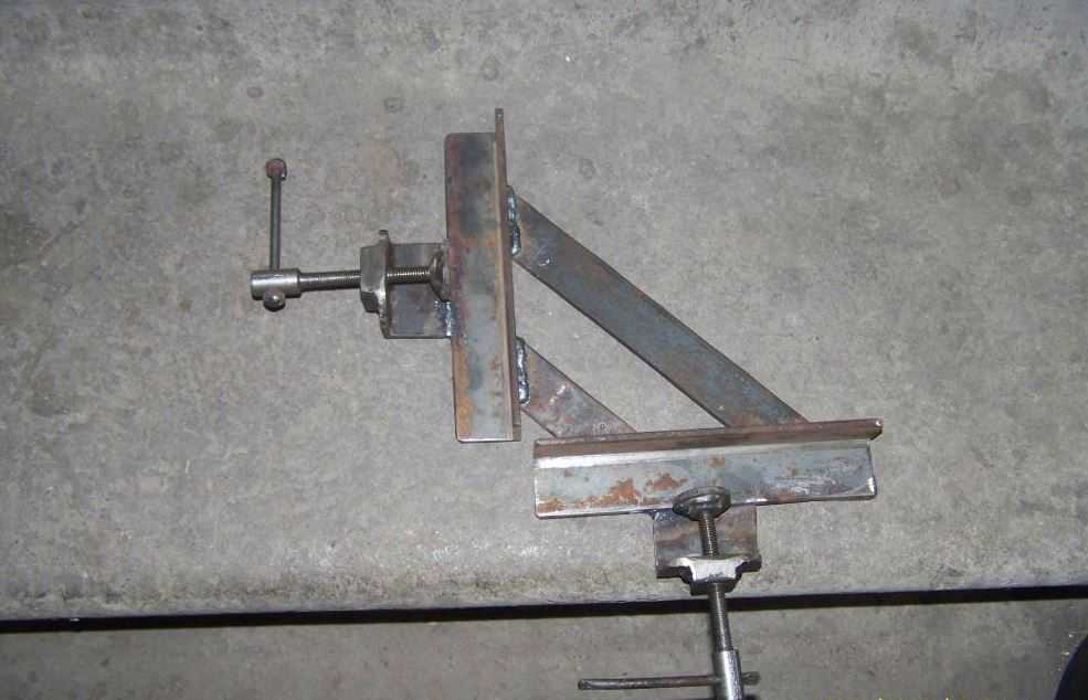 Струбцина для сварки труб легко изготавливается из металлического уголка и стальных пластин.