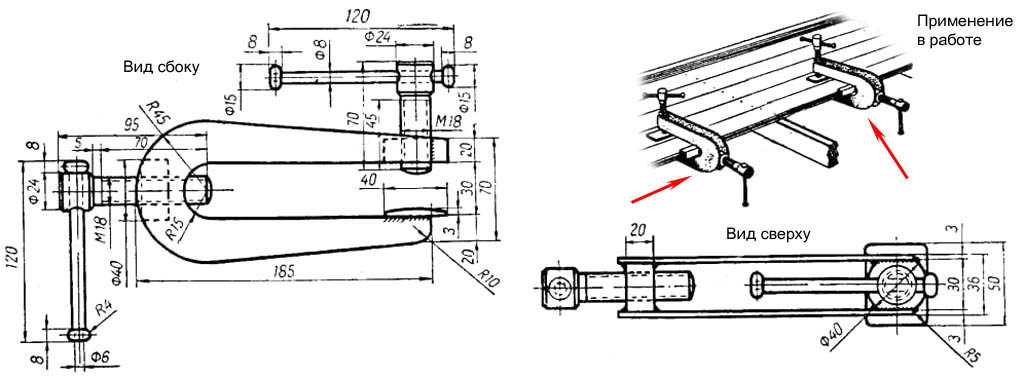 Чертежи поджимной струбцины и способ их применения показаны на рис.: