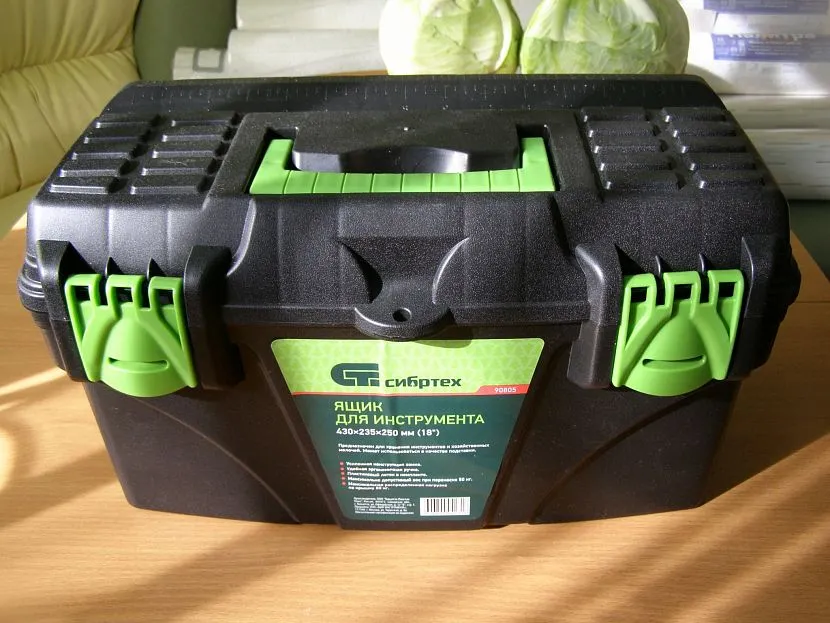 Сибртех 90805 43×23.5×25 см. Недорогой ящик от российского производителя, который был создан для хранения мелких деталей и крепежных элементов. Несмотря на пластиковый корпус, устройство способно выдерживать значительные нагрузки.