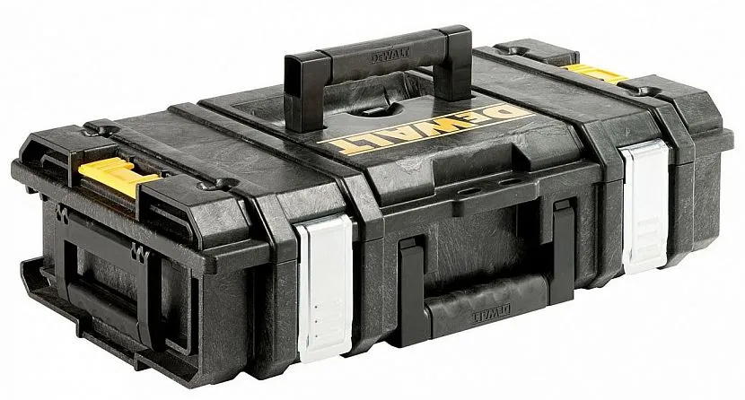 DeWALT DS150 Tough System. Современное и стильное устройство предназначено для использования профессионалами, которым приходится часто переносить множество рабочих инструментов. Чтобы изделие хорошо справлялось с нагрузками, его изготавливают из прочного пластика, а также добавляют усиленные ручки. Вес такого ящика составляет всего 4 кг.