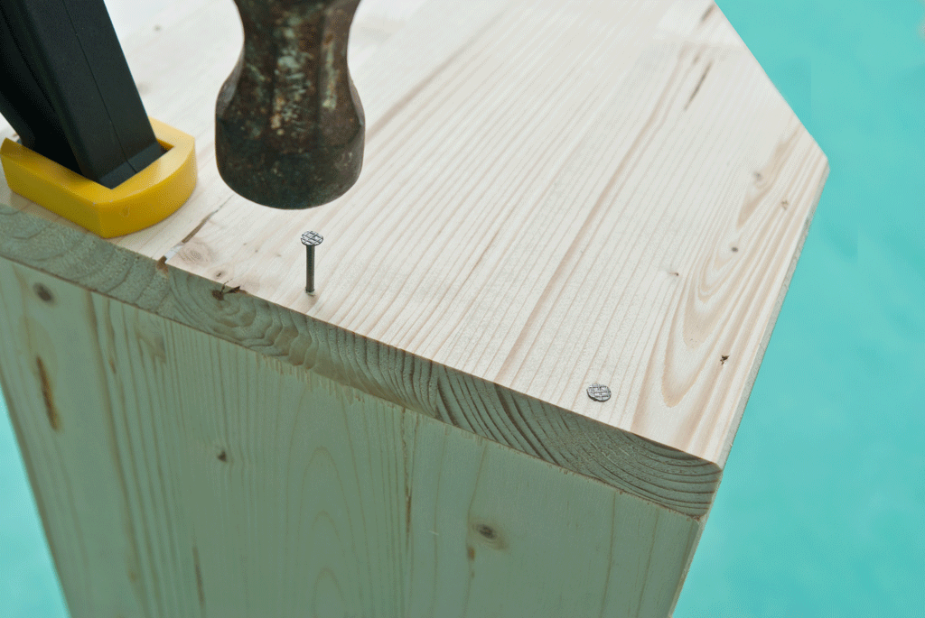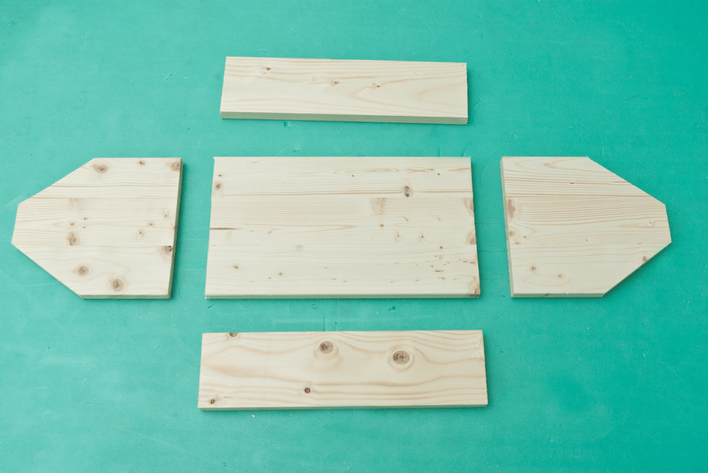 Элементы выпиливают в соответствии с запланированными размерами, обрабатывают наждачной бумагой и скрепляют между собой саморезами. Для большей надёжности боковые части можно зафиксировать металлическими уголками.